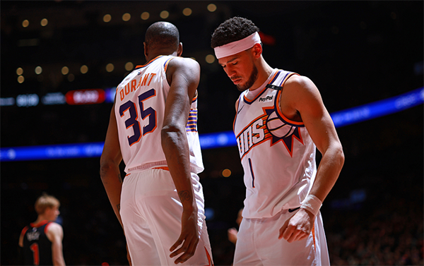 24直播網(wǎng)訊北京時(shí)間2月24日,NBA常規(guī)賽太陽109-127慘敗猛龍,布克31分8助攻4籃板,比爾30分4籃板,杜蘭特15投5中、三分5中0拿到15分4籃板4助攻3搶斷3蓋帽,三巨頭合砍76分仍慘敗,...